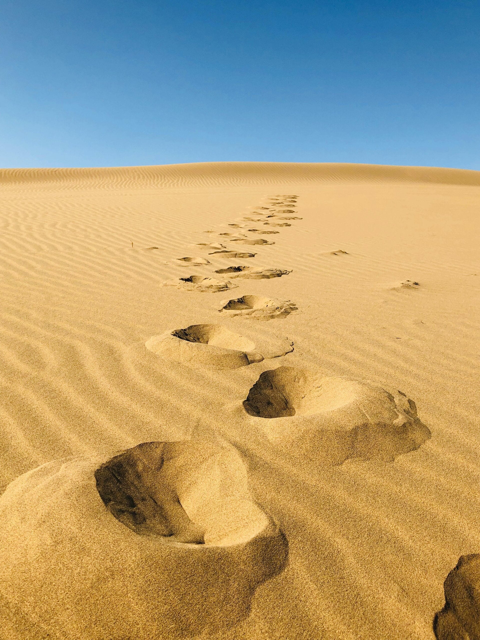 Le sable jaune forme une pellicule sèche sous ses pieds, et lorsqu’elle retire ses chaussures elle se complait à le farfouiller de ses orteils. Il est doux au toucher, et s’accroche à la sueur dégagée, dessinant des ridules dorées sur la peau veinée, carte peinte de la suite de son cheminement, glissement de grains s’affinant au fil de ses gestes au cours de la soirée.